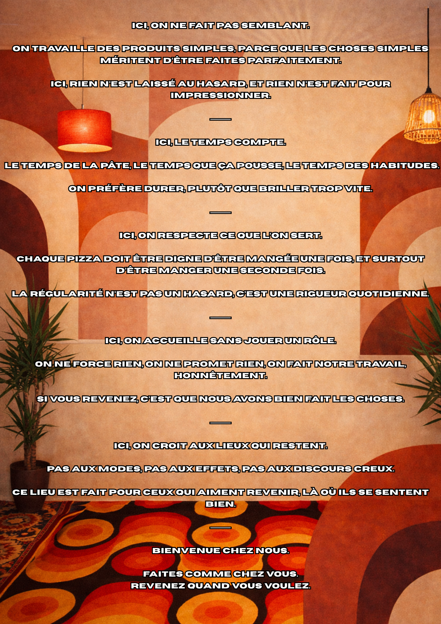 “ Nous espérons vous recevoir prochainement pour vous partager notre amour pour ce magnifique art qu’est la véritable Pizza Traditionnelle et artisanale.”
